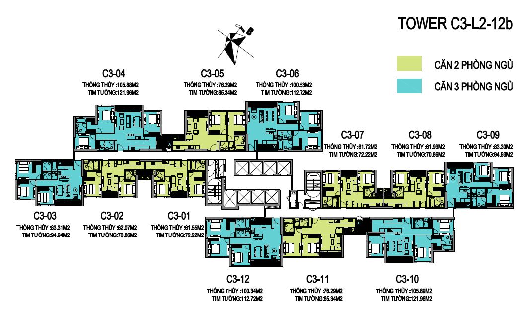 • Tòa C3: Được coi là trái tim của dự án với tầm nhìn trực diện ra hồ điều hòa và công viên.