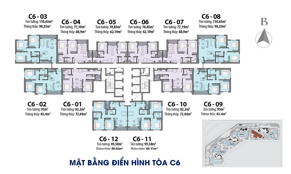 Dự án bao gồm 6 tòa tháp với những đặc điểm riêng biệt, phù hợp với nhu cầu đa dạng của khách hàng: