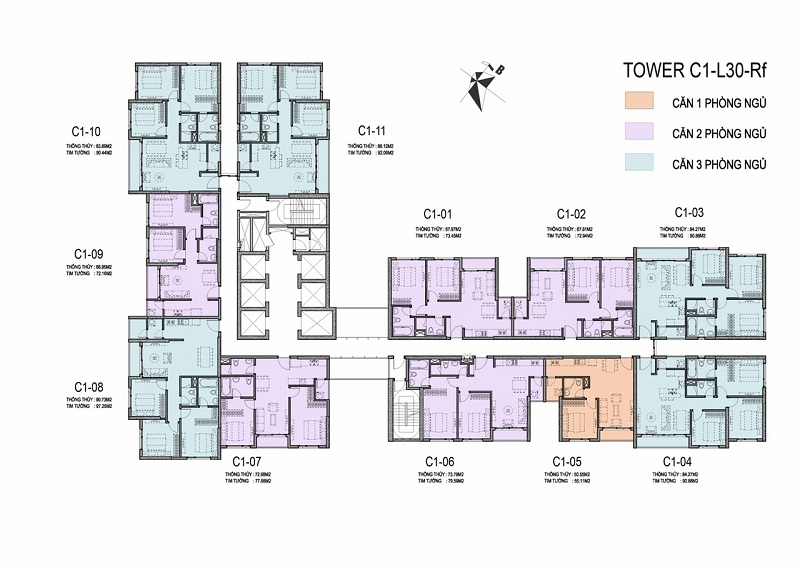 • Tòa C1: Cao 39 tầng, sở hữu vị trí cửa ngõ, các căn hộ có thiết kế thông minh, tối ưu diện tích.